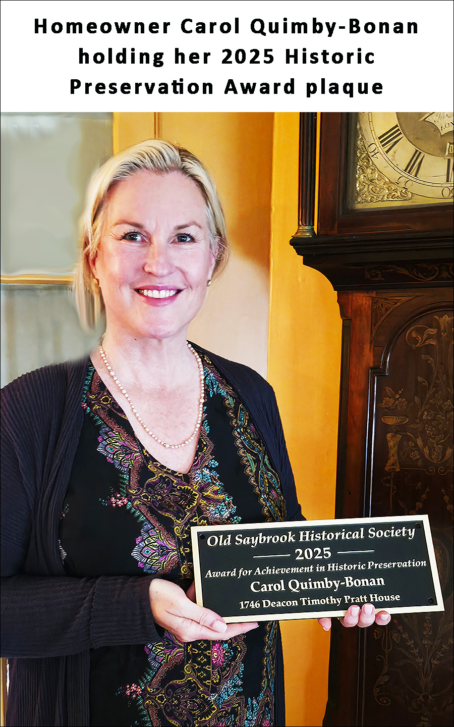 The sixth annual Old Saybrook Historical Society’s Achievement in Historical Preservation Award was presented to Jessica and Lincoln May for their restoration work on their Dudley Building on the corner of Main Street and Dudley Avenue. The Mays own the Saybrook Hardware as well as the entire building, which houses three other Main Street businesses.